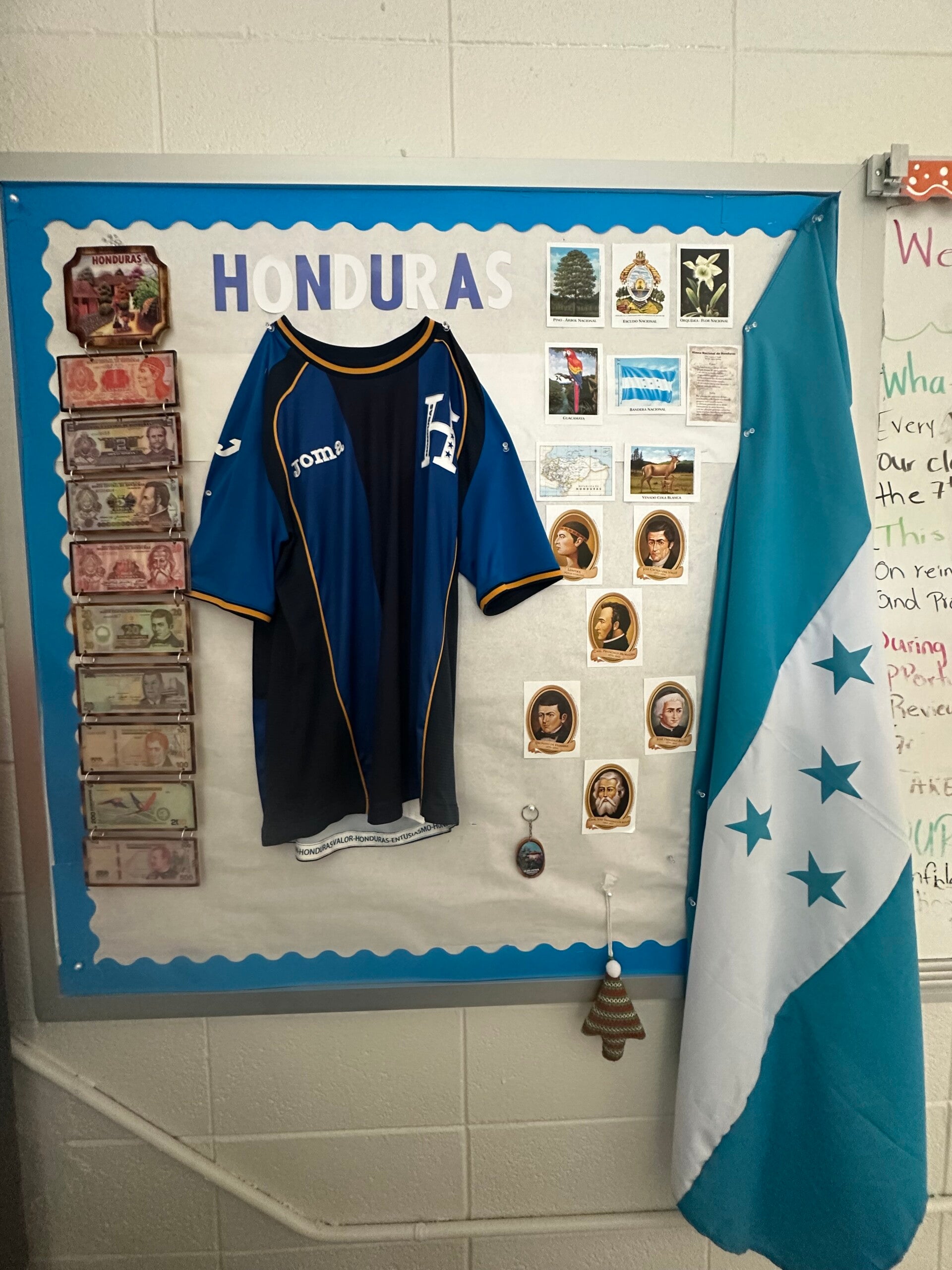 Furthermore, I use visual resources such as a map of Honduras to help students understand geography and develop spatial awareness of the world beyond their local community. The classroom also features the Honduran national flag and cultural items like a traditional T-shirt, creating an environment where diversity is visible, valued, and celebrated. Through these daily experiences, students develop curiosity, cultural pride, and a broader global perspective.
